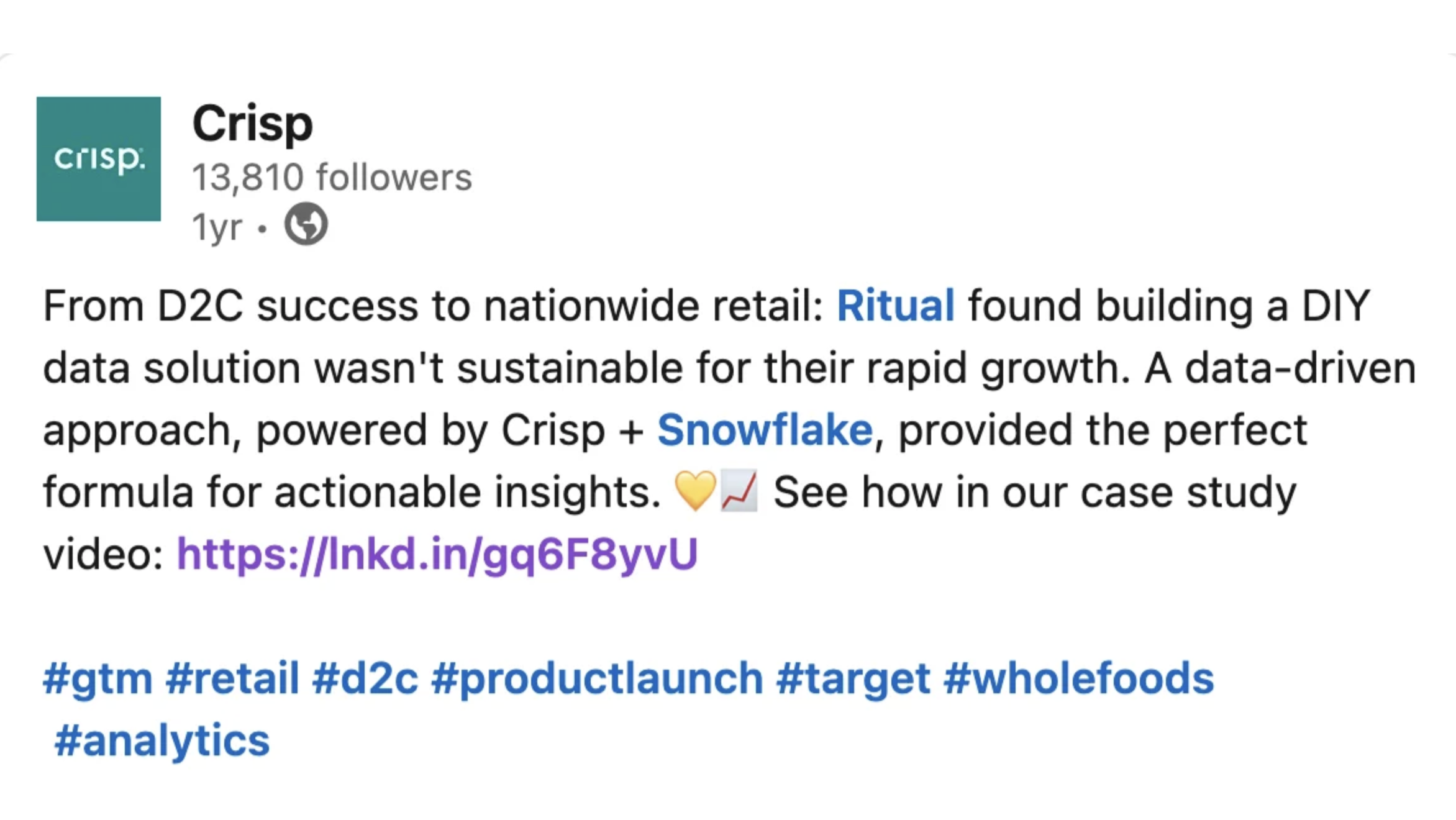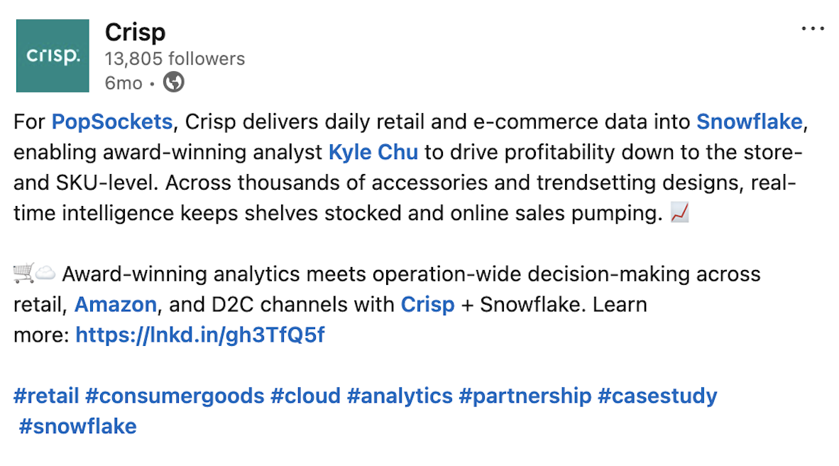 Posts on LinkedIn welcomed every new brand to the Crisp family. Here are a handful.