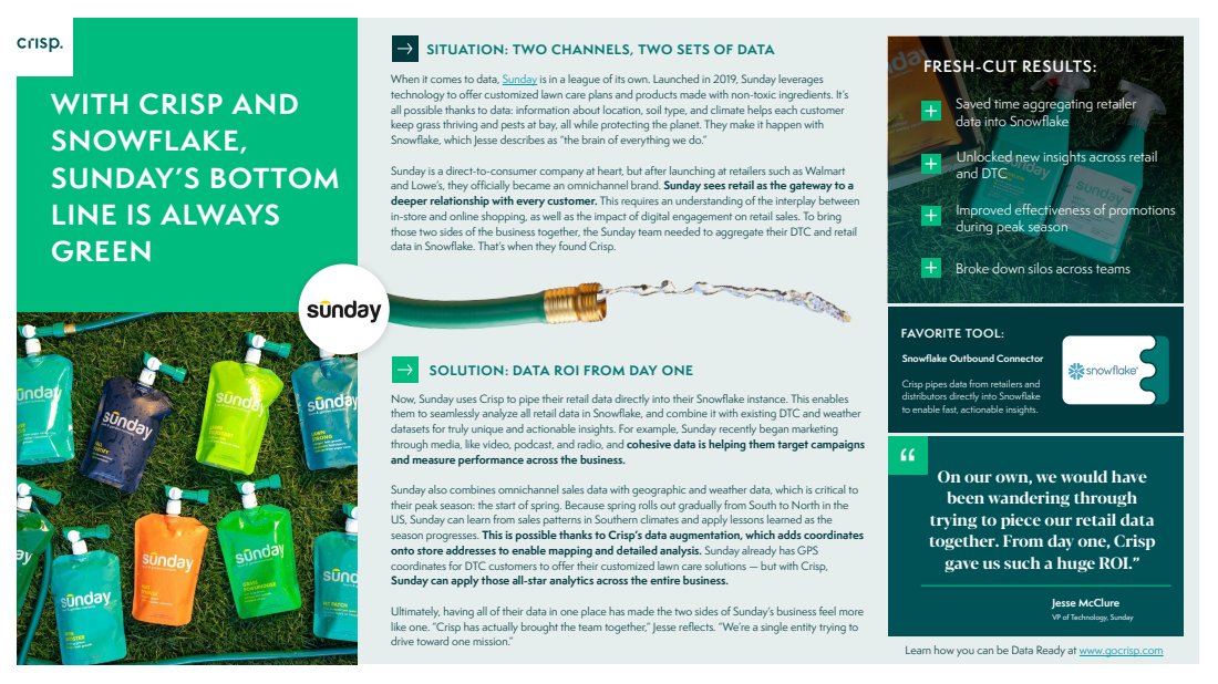 Over $15T in goods flow through global supply chains annually. But the data required to optimize this movement is disconnected and siloed. That's where Crisp comes in. The leading retail data company that leverages AI to facilitate the integration, access, and exchange of data between CPG brands, retailers, and distributors, Crisp completely revolutionized sales and supply chain infrastructure.